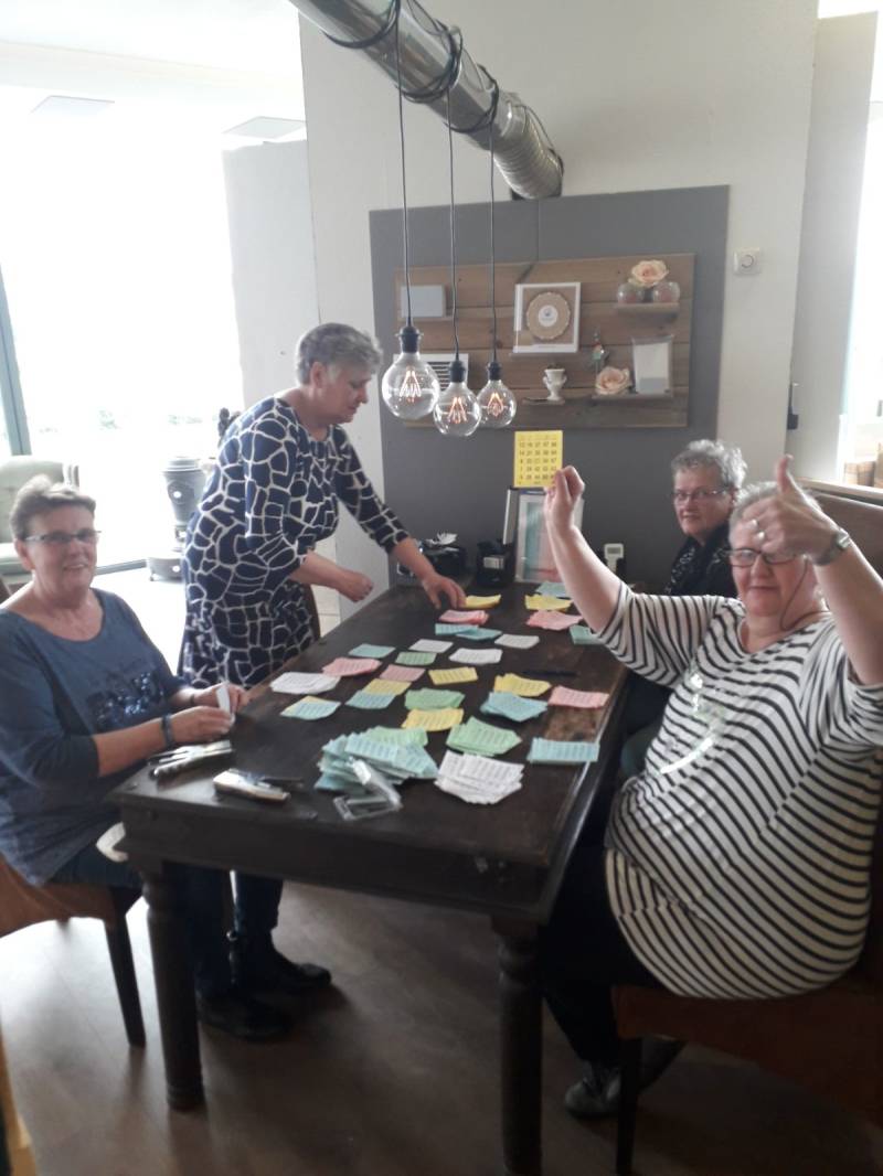 Ook de verloting, die we aansluitend op de bingo hebben gehouden was zeer geslaagd. Ik pakte de prijzen, Wilfred noemde ze op en Ilona en Jarno brachten de prijzen naar de winnaars toe. Het liep allemaal vlekkeloos! Na de tijd hebben we alles samen met de vrijwilligers opgeruimd en met zijn allen nog even de middag besproken en natuurlijk gekeken hoeveel geld we hadden opgehaald; € 460,-- Daar waren we zeer content mee!!